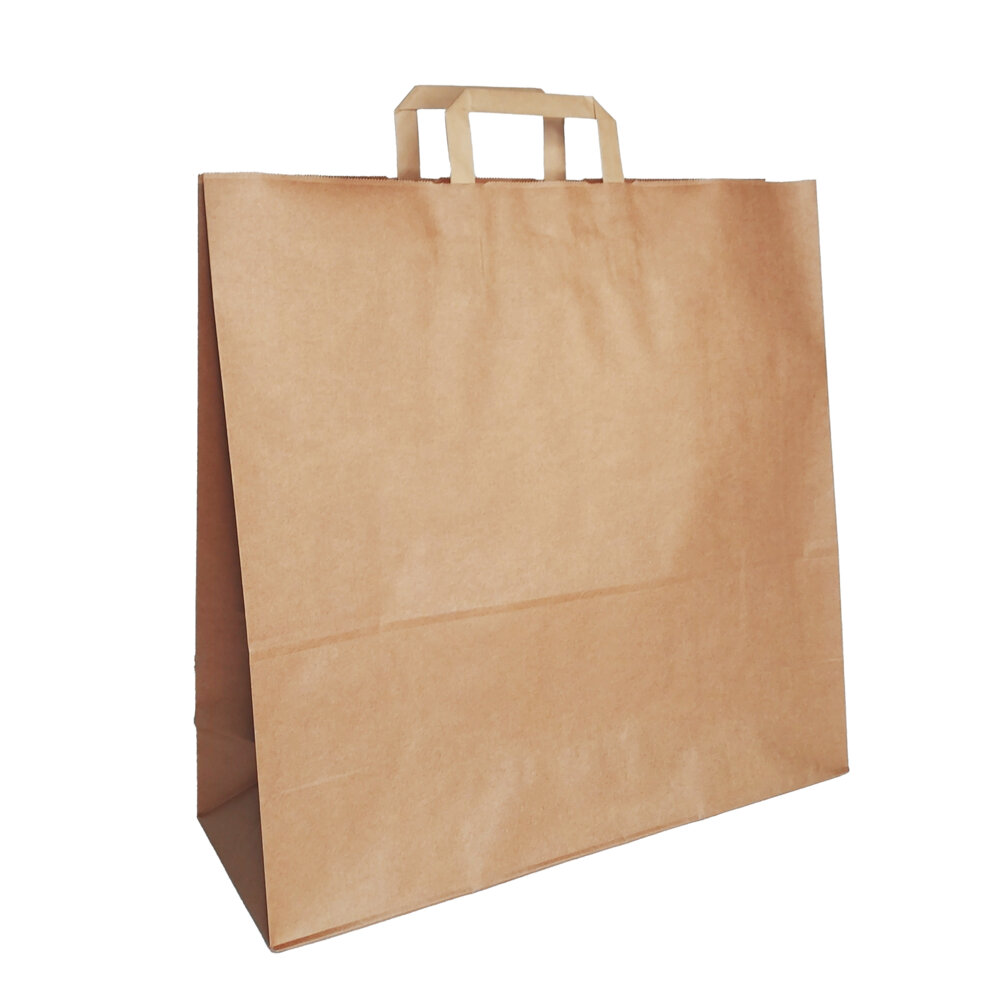 Ekologiczne torby papierowe w standardowej jakości z płaskim uchwytem. Nadruk toreb realizujemy metodami: sitodruk, flexodruk, offset